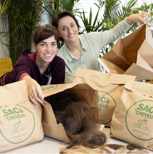 In jedem Zopf gibt es Haare, die zu kurz für die Verarbeitung sind. In einer Organisation in Südfrankreich werden daraus Haarmatten und Schläuche hergestellt, die das Meerwasser reinigen. Dort schicken wir regelmäßig alle
