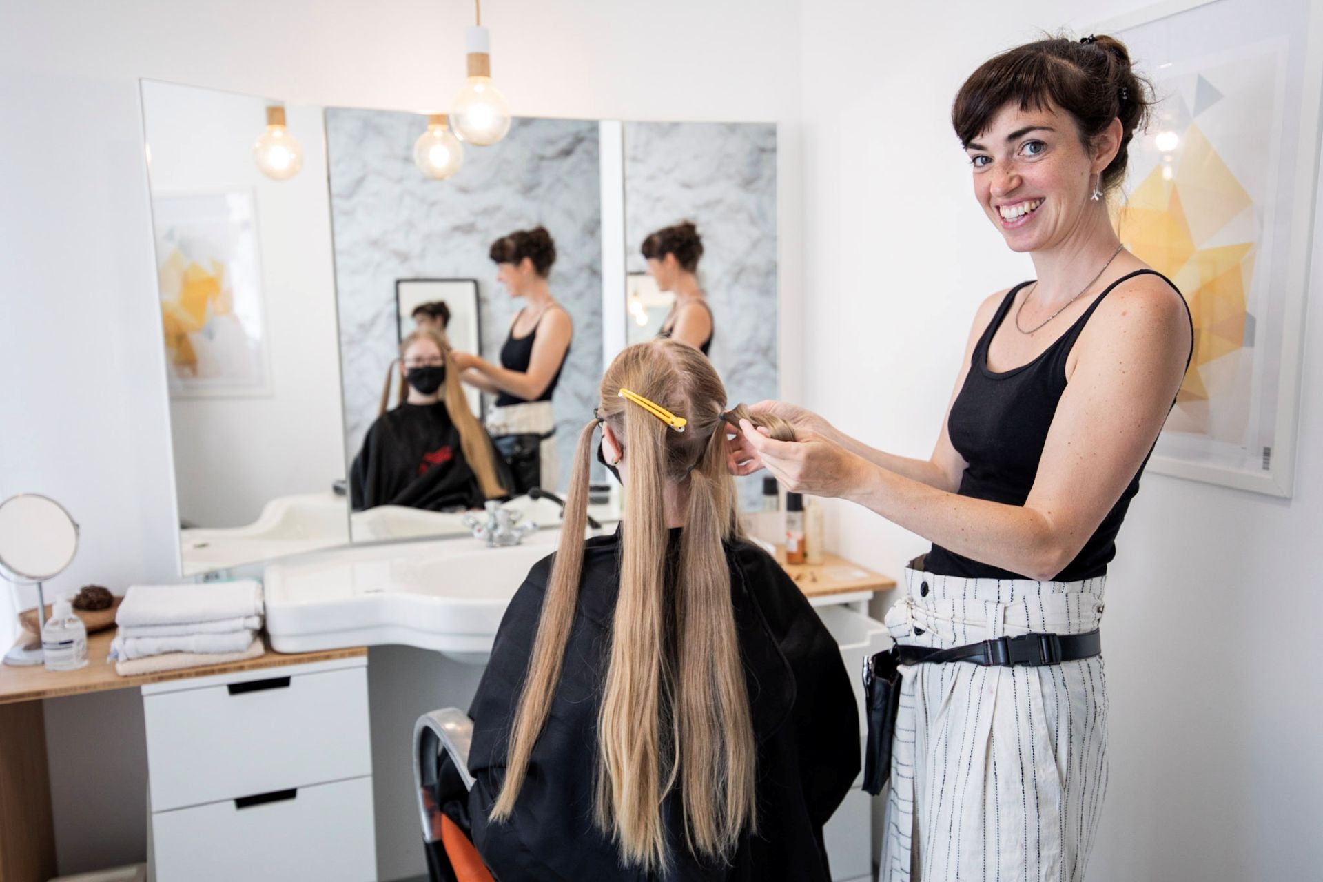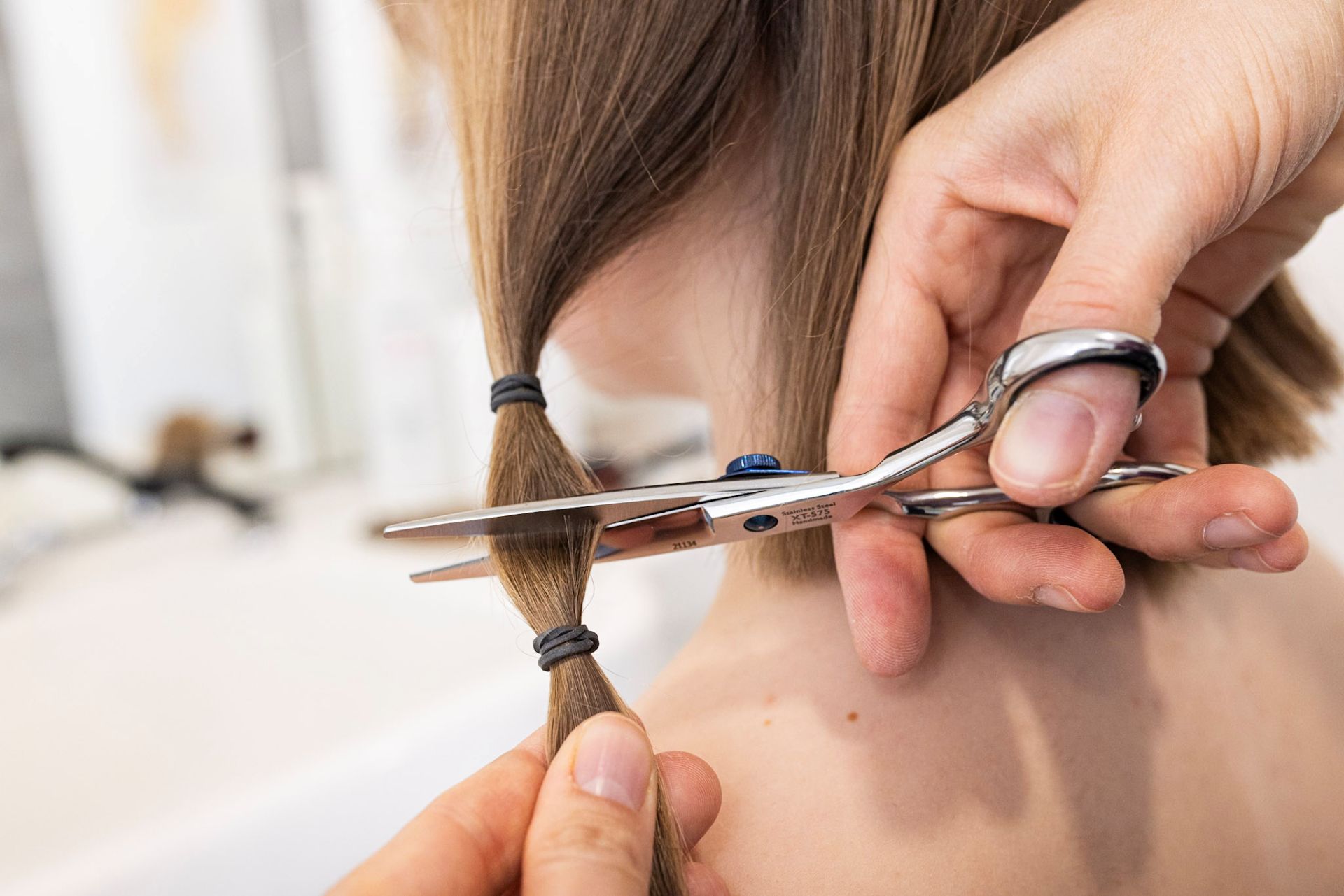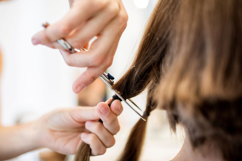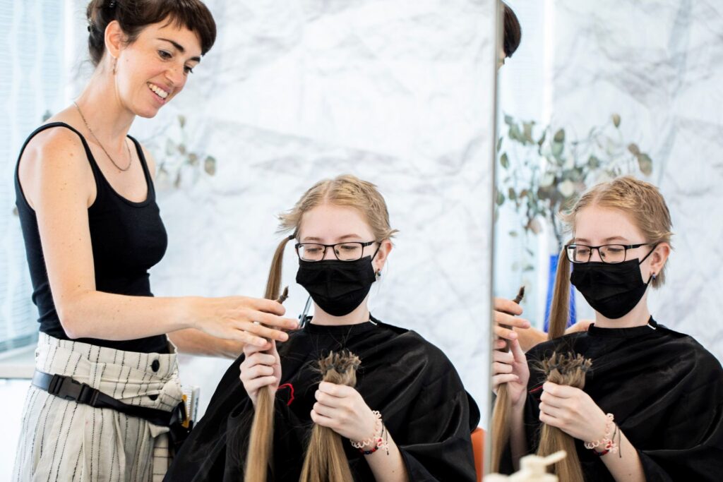 Lasst eure Haarspende in trockenem, sauberen Zustand abschneiden, erst danach wird das restliche Haar gewaschen.