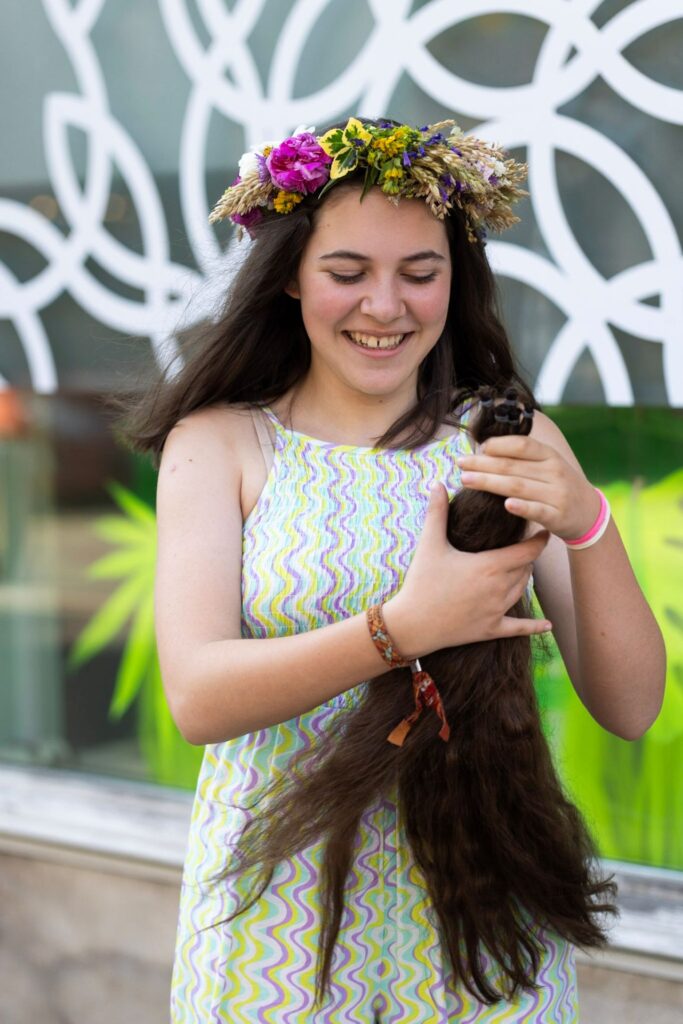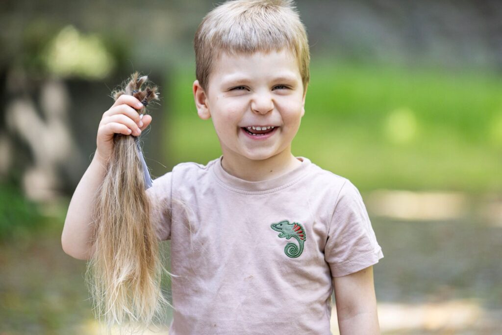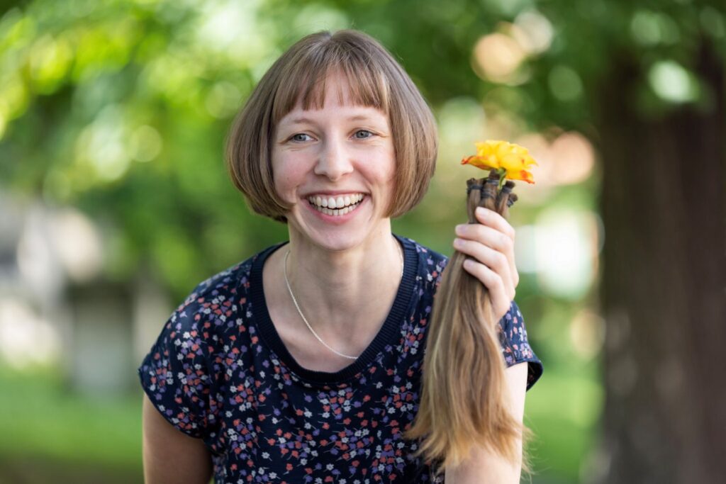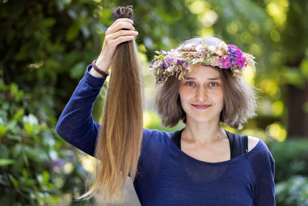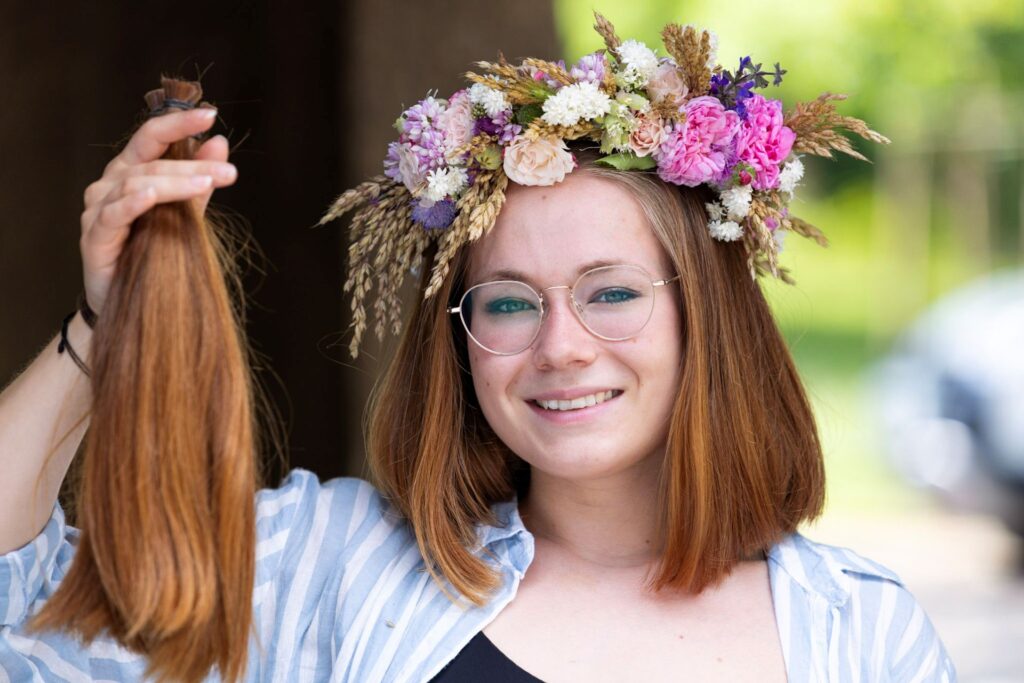 Eine Haarspende muss mindestens 30cm lang sein und die Haare sollen unbehandelt sein. Dabei ist es ganz egal welche Farbe die Haare haben oder wie alt du bist.